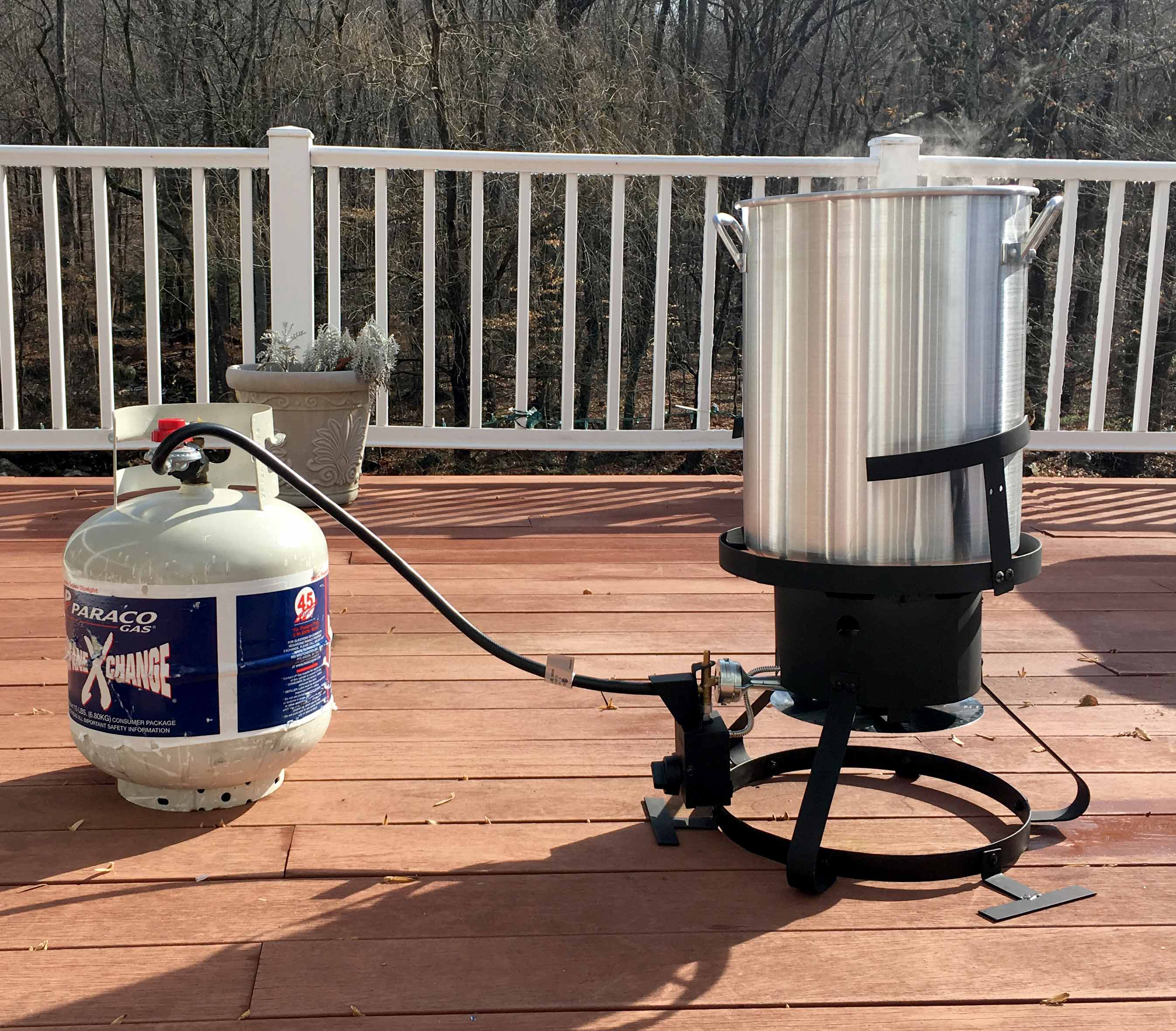 Time to boil the sap into syrup. Purists will scoff, no doubt, but the Native Americans would have loved one of these. Then they could have fried turkeys for the pilgrims as well as boil their maple sap.